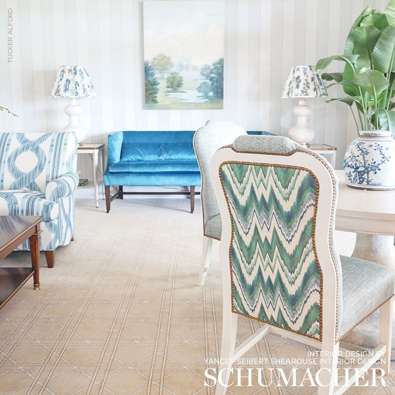 Schumacher 68942 Valkyrie Flame Stitch Emerald & Peacock Fabric