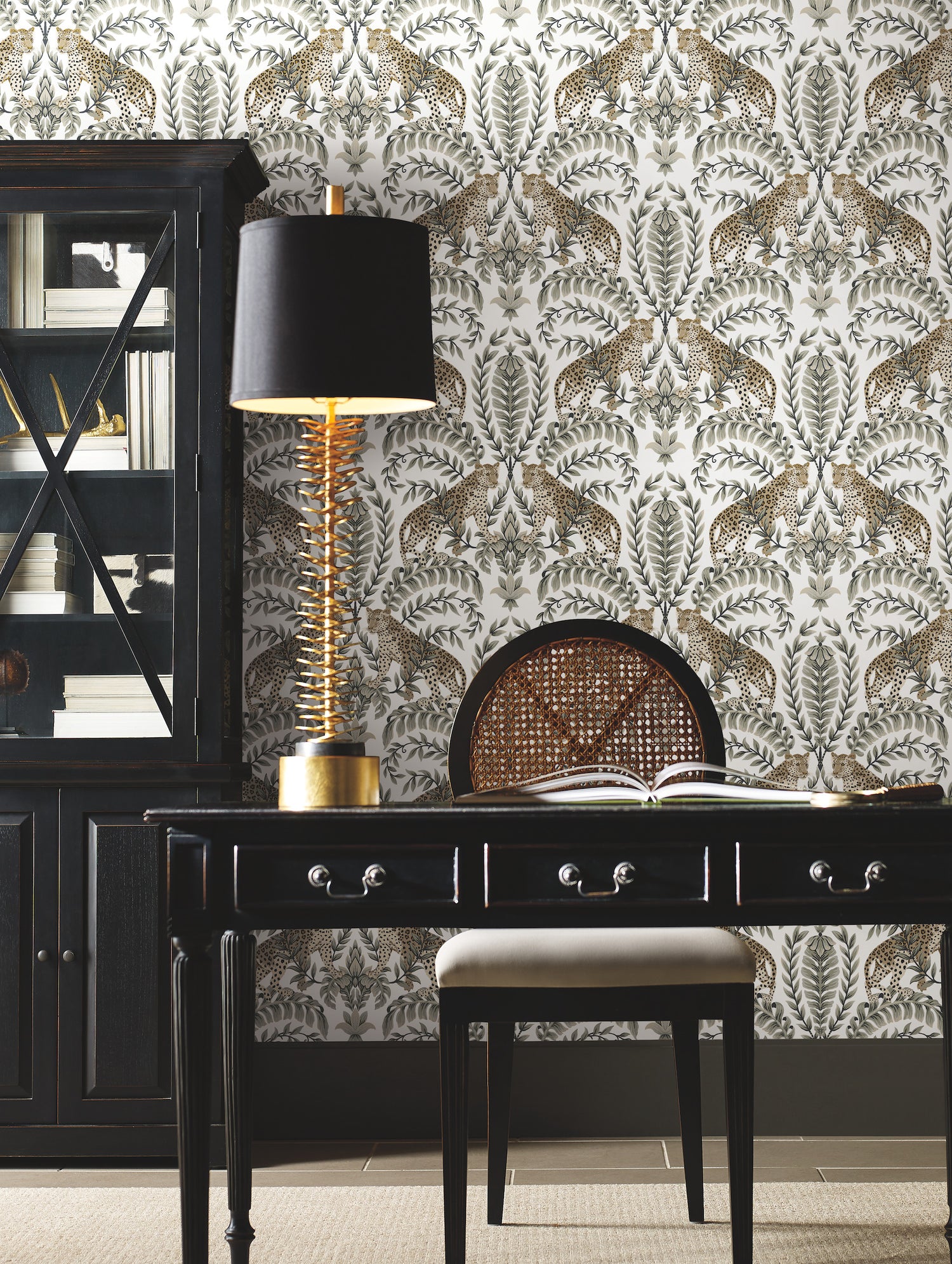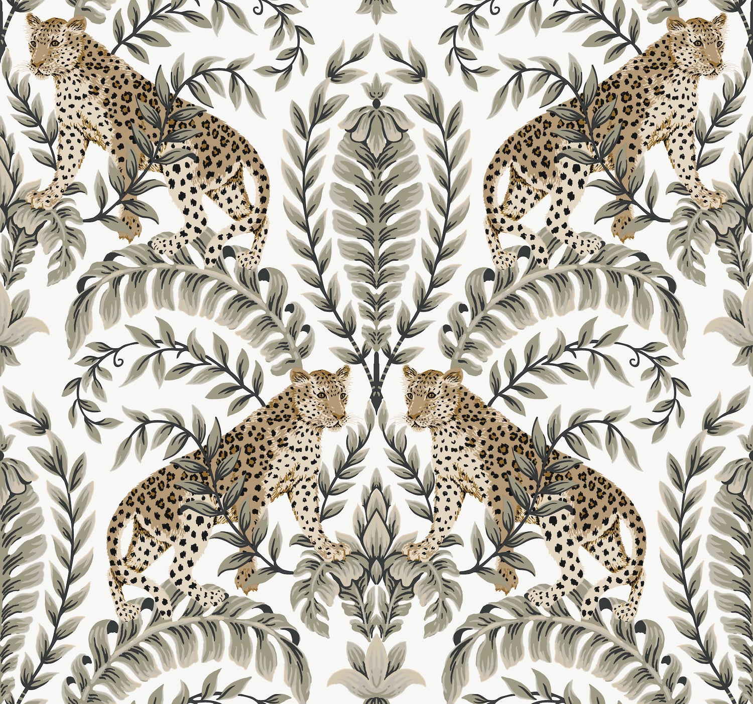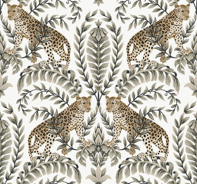 York KT2202 Jungle Leopard White & Black Wallpaper