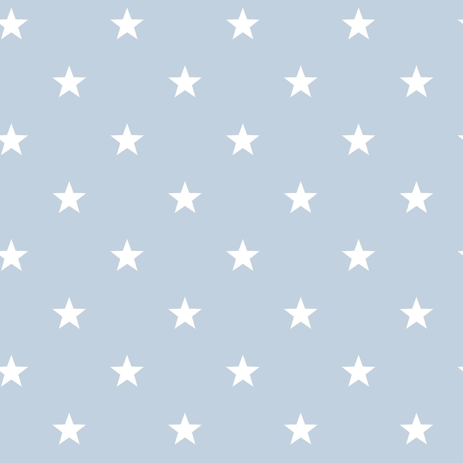 Nautical themed star wallpaper from the collection, featuring identical white stars across a light blue background.