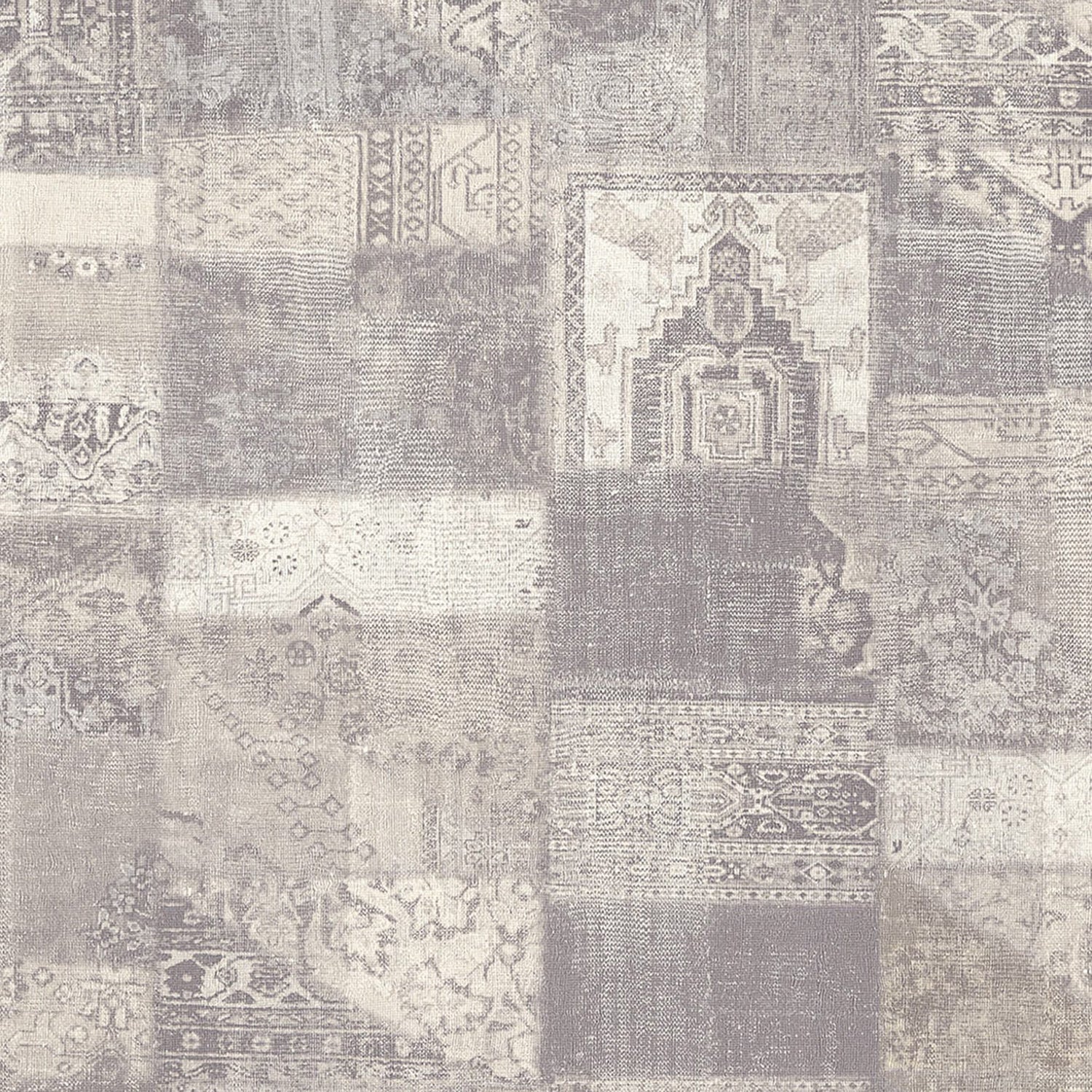 In soft hues of lavender and cream, this abstract aztec design vinyl wallpaper that gives you an illusion of patchwork.