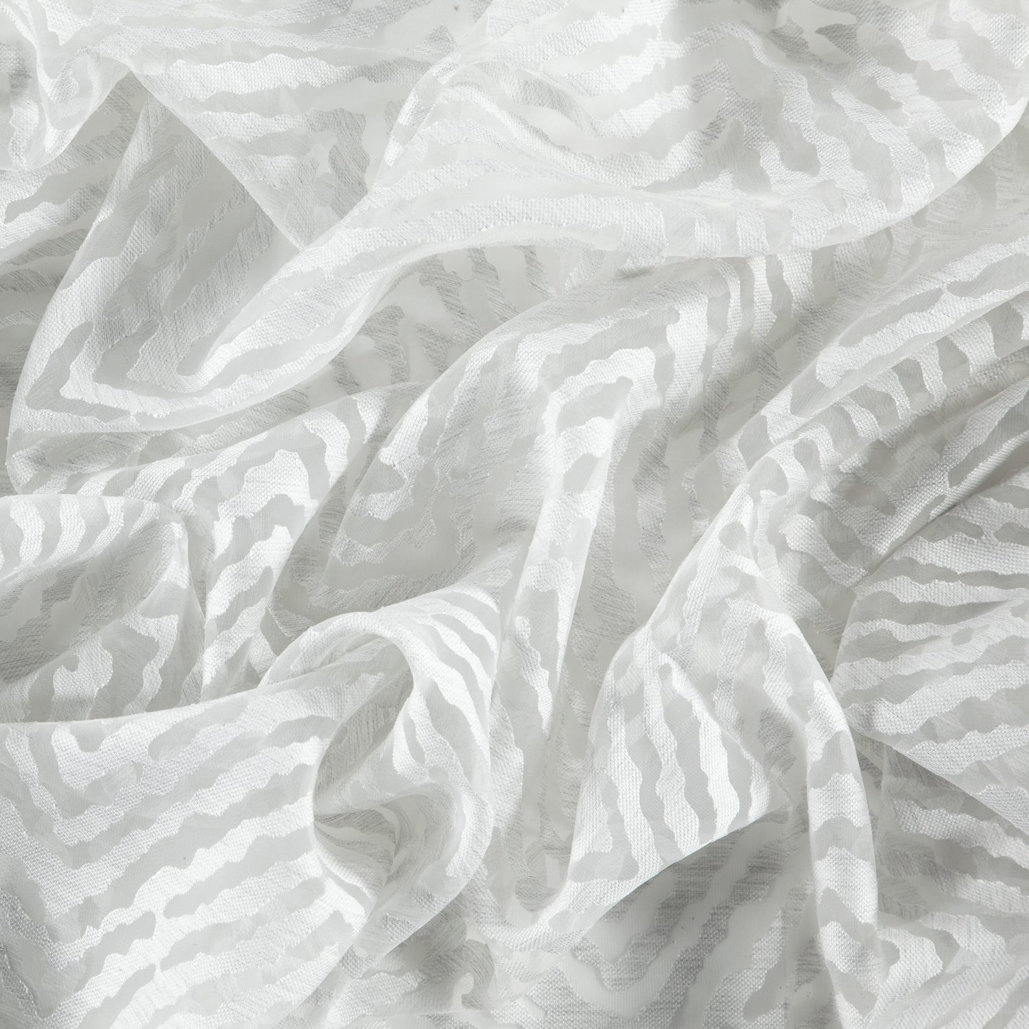 Large vertical chevron design, wide width burnout sheer. In a light gray coloration.