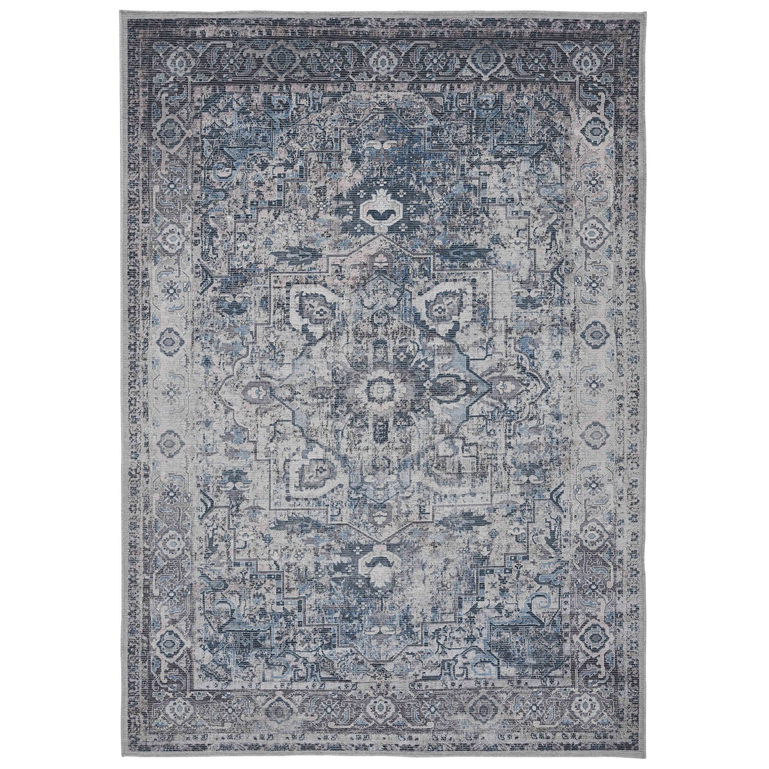 Amer Rugs ALA-3 Alaska Machine-Washable Vintage Medallion Power-Loomed Gray/Blue Area Rug