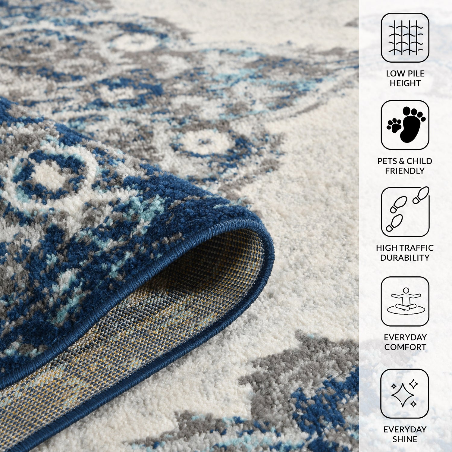 Elevate the look of your living room or add comfort in your bedroom with this exceptional area rug. Contemporary farmhouse and updated oriental designs in deep, bold colors allow this rug to work beautifully in a variety of home settings. Made in Turkey of soft, durable polypropelene, this affordable rug will last for years to come.