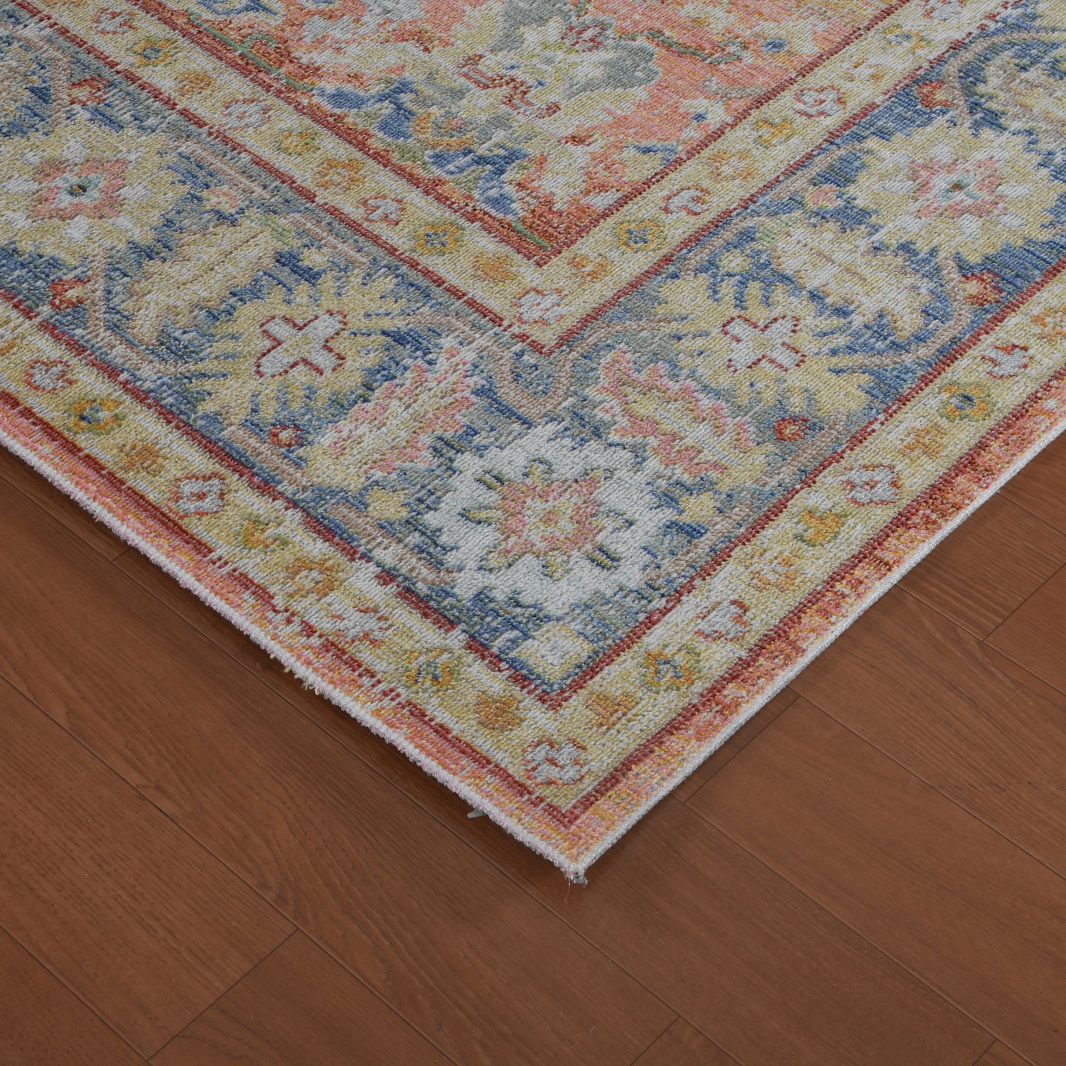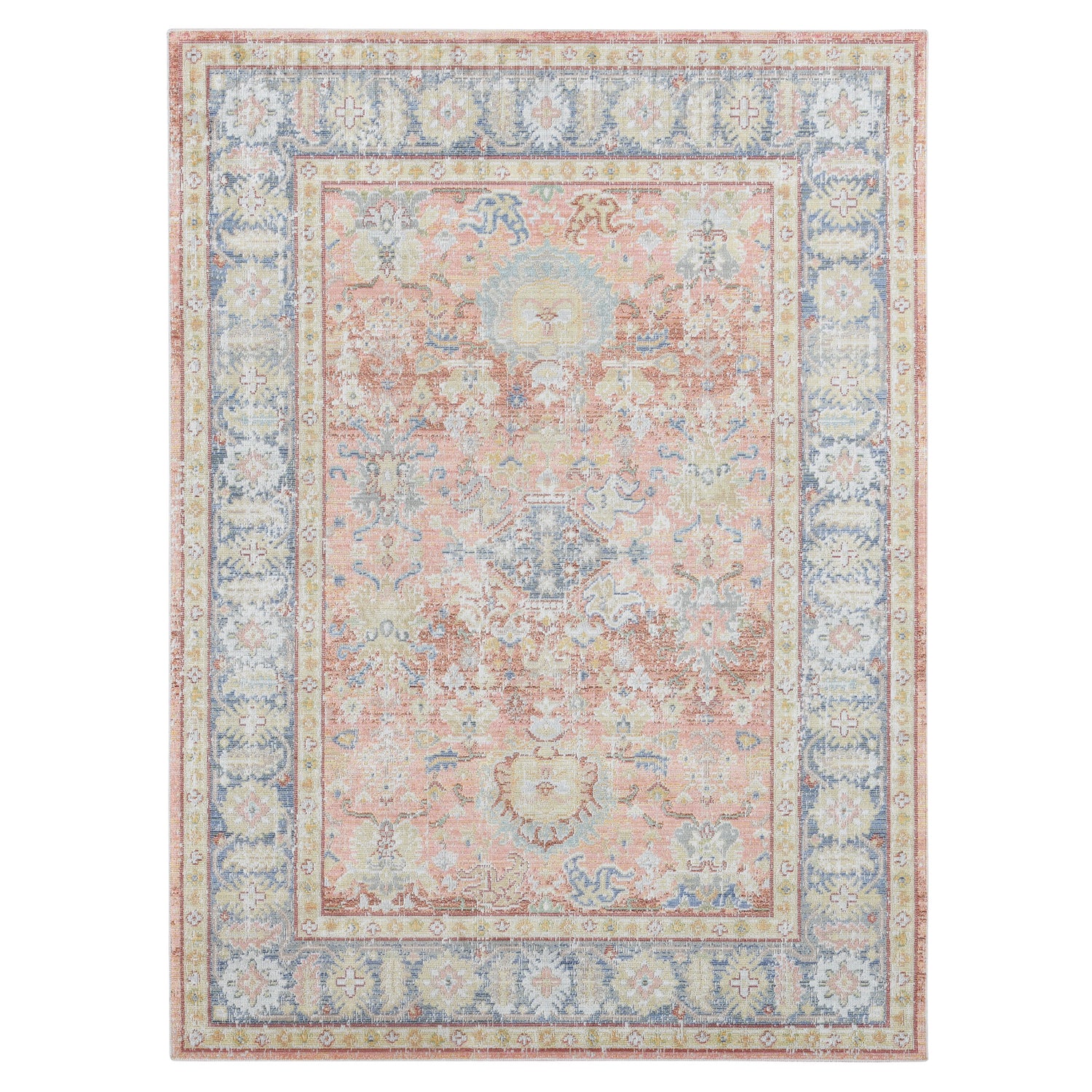 If you're looking for a classic and timeless designer rug, you're in the right place. Flaunting a refreshing color palette, this area rug is versatile enough to easily fit into any space in your home. Featuring a vintage, weathered look and a super low pile, you'll love both its design and craftsmanship. Power-loomed in Turkey with 100% polyester yarn, this rug is as durable as it is beautiful.