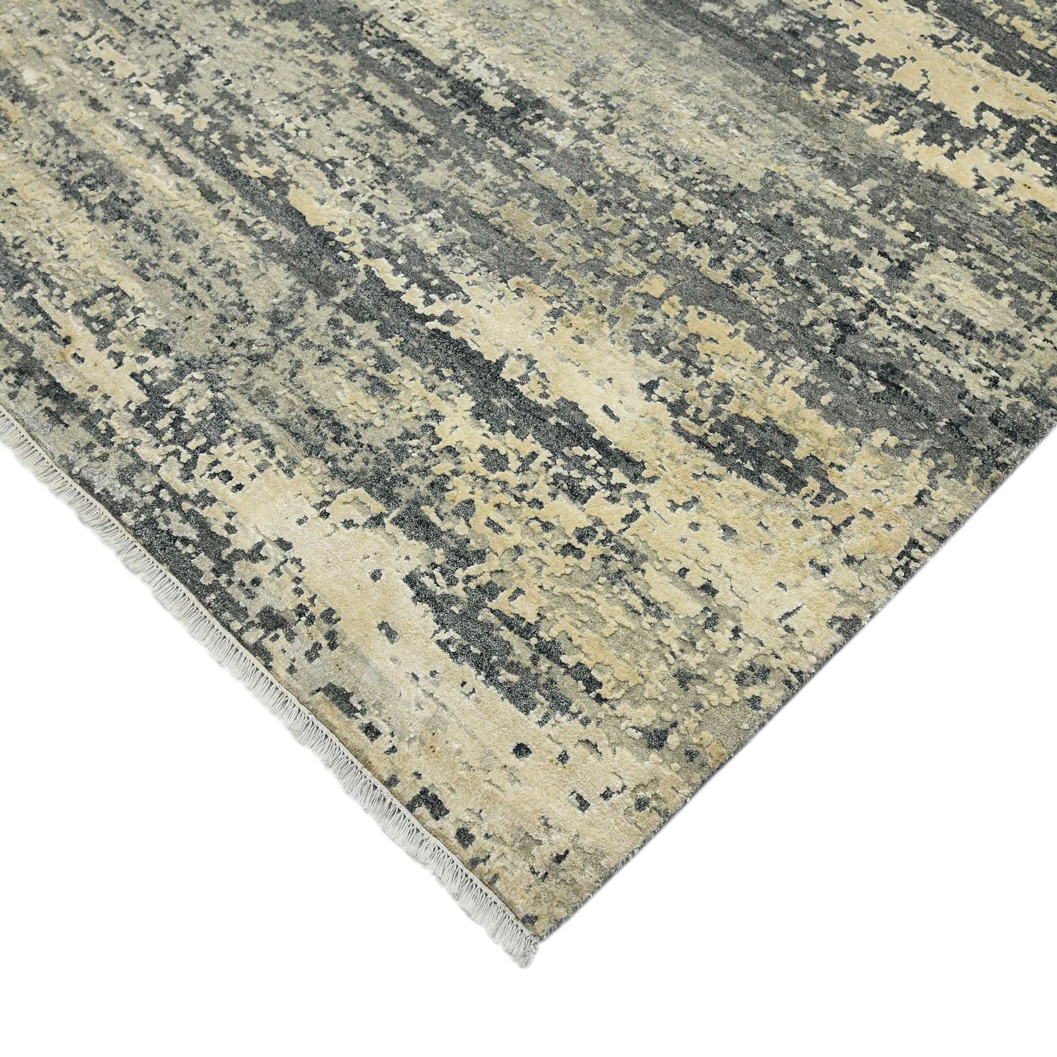 Bold, abstract designs and bright colors make up this beautiful hand-knotted piece. Made of only the finest hand-picked and meticulously inspected premium New Zealand Wool and raw handspun all-natural silk, this rug is hand-carved to give a high-low effect, with stunning results. The silky texture gives a lustrous feel and the wool adds durability and strength, allowing you to pass this rug down from generation to generation.