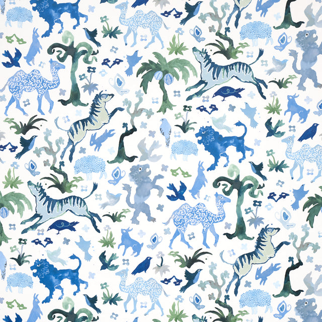 Schumacher Beasts Blue And Green Wallpaper - Yard is backordered and will ship as soon as it is back in stock.