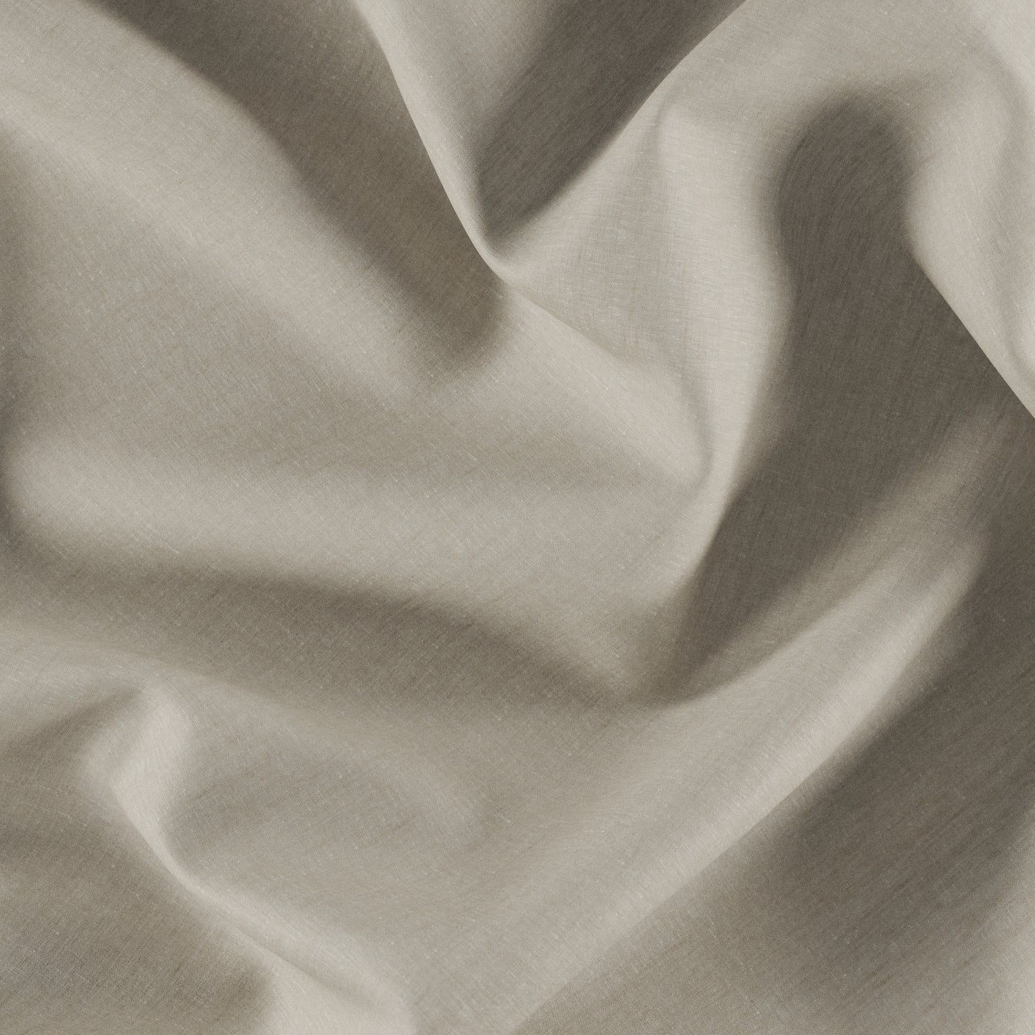 Plain drapery linen fabric with slubbing, finely woven with two tone yarns in taupe brown hues.