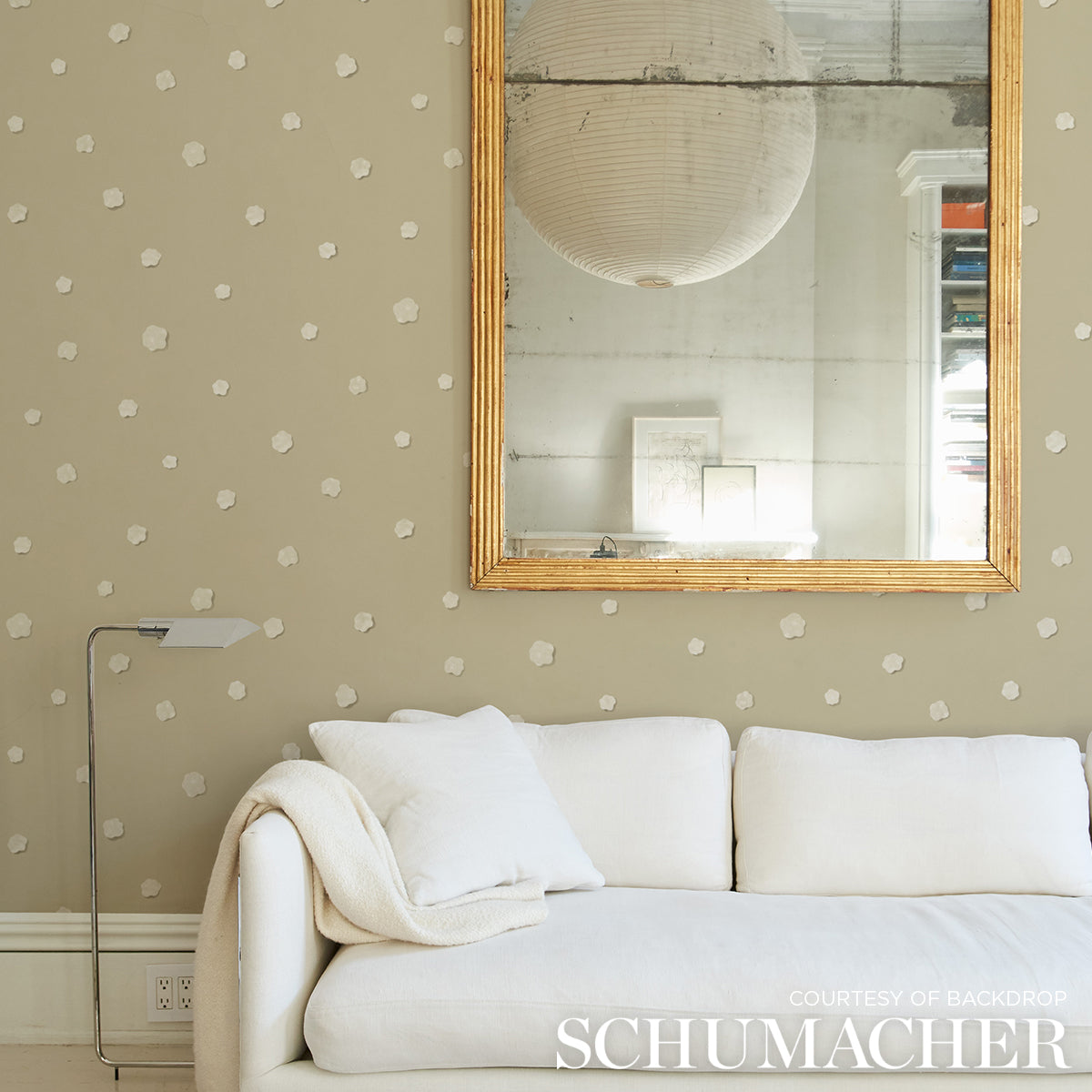 Part of the Backdrop V collection, Heavenly Bodies in sand is an abstract allover wallpaper design inspired by stars and clouds. This versatile mid-scale pattern, with its subtle shadow effect and enchanting hand-painted look, is a wonderful way to add visual interest and unique dimension to a space. Pairs with Backdrop paint colors Harvest Moon, Palo Santo and Dark Arts.