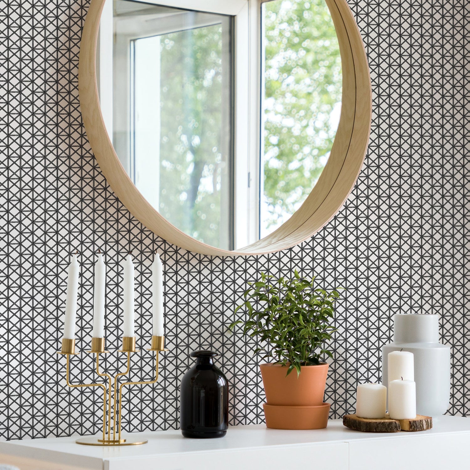 A-Street Prints 2969-26004 Lisbeth Black Geometric Lattice Wallpaper