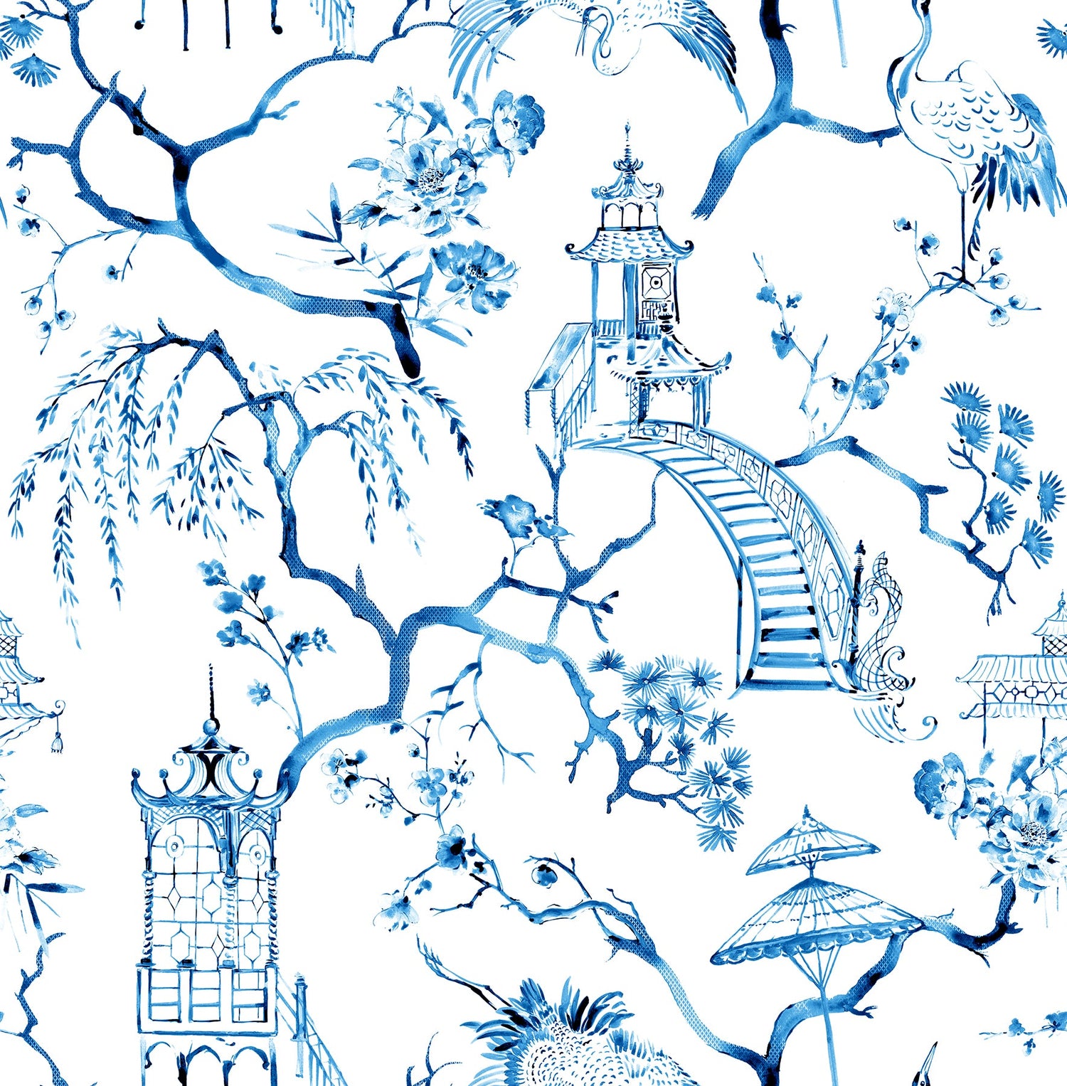 A-Street Prints 4120-26810 Serena Blue Chinoiserie Wallpaper - Bolt is backordered and will ship as soon as it is back in stock.