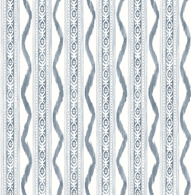 A-Street Prints AST4349 Rhys Blue IKAT Stripe Wallpaper
