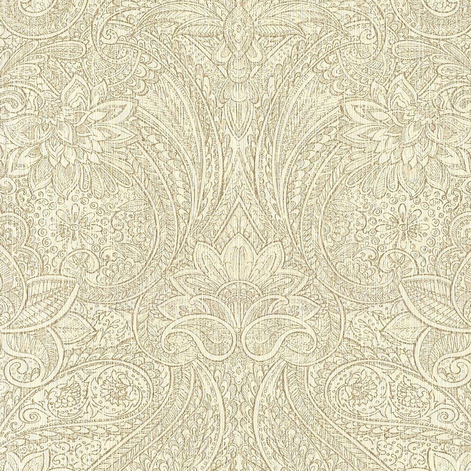 This stunning floral paisley feature is brought to life with gold metallic detailing. A tasteful way to add a bit of shimmer to your walls. Cream coloration.