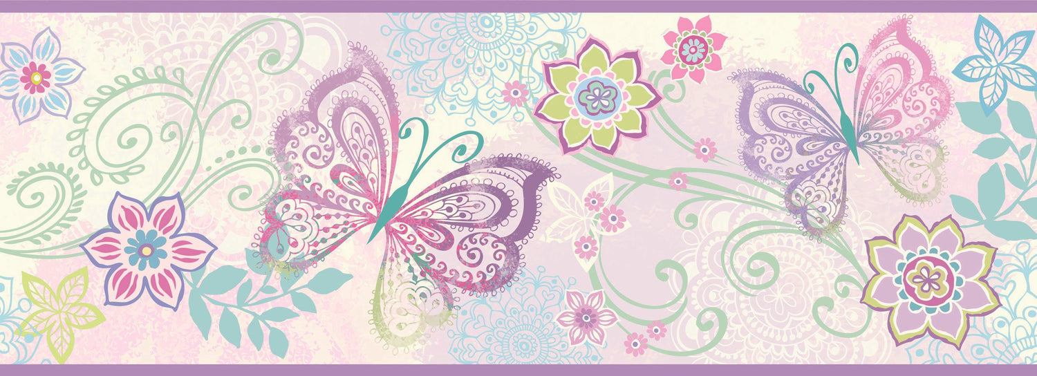 Chesapeake BBC46452B Fantasia Purple Boho Butterflies Scroll Border