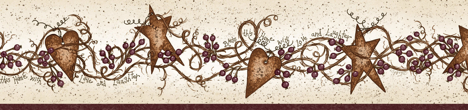 Chesapeake BBC65171B Sassafras Red Curly Stars Trail Border