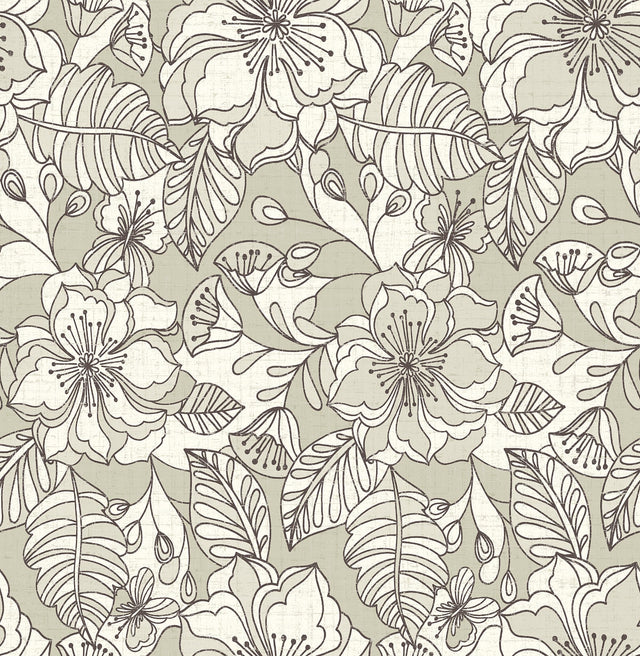 Brewster 2766-003541 Vera Taupe Flowers Wallpaper - Bolt is backordered and will ship as soon as it is back in stock.