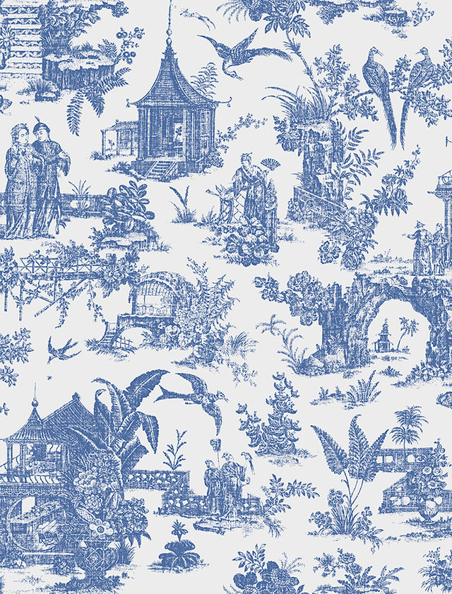 Brewster 2766-21767 Ume Blue Toile Wallpaper