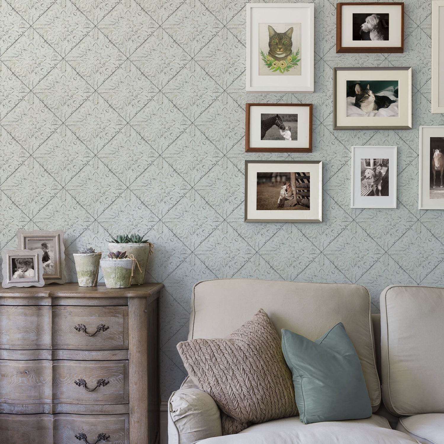 Brewster 2904-13092 Brandi Light Blue Tin Tile Wallpaper