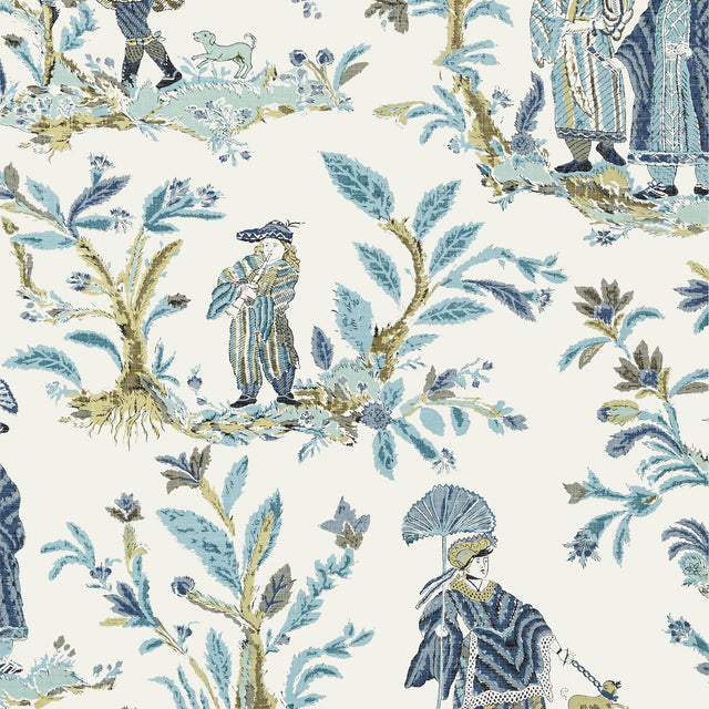 Thibaut T72574 ROYALE TOILE Turquoise and Navy Wallpaper