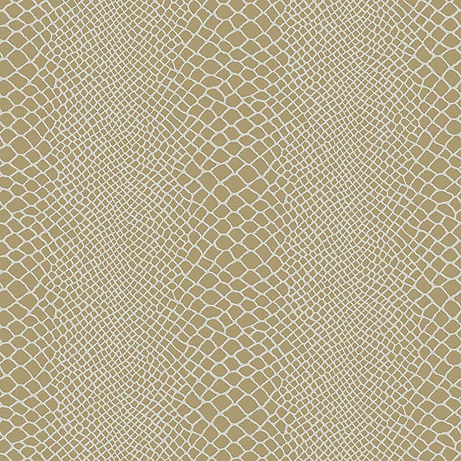 Exotic faux snakeskin wallpaper, in a metallic gold coloration.