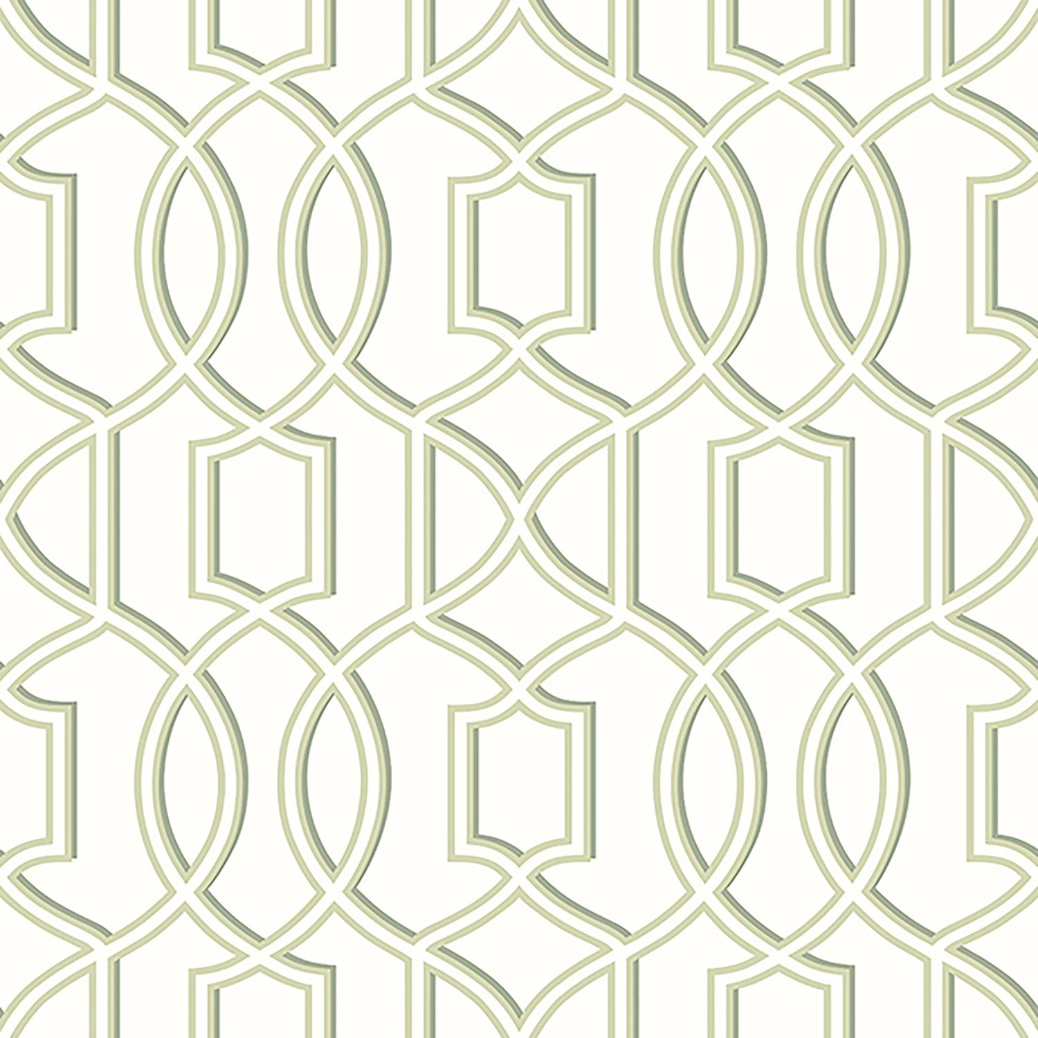 This wallpaper features a geometric design in tones of green on a crisp white backing.