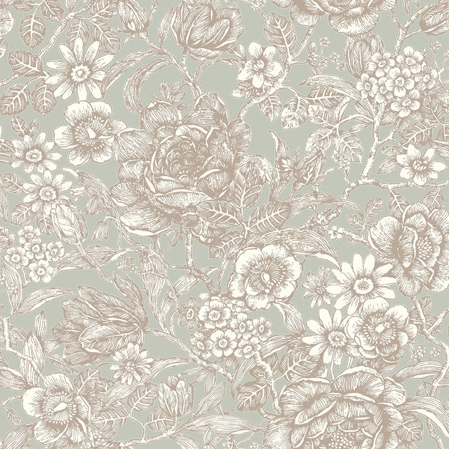Crown M1185 Hedgerow Moss Floral Trails Wallpaper - Bolt is backordered and will ship as soon as it is back in stock.