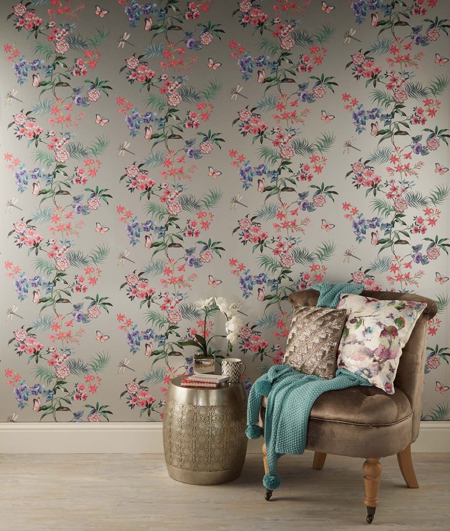 Crown M1346 Carmen Silver Floral Wallpaper - Bolt is backordered and will ship as soon as it is back in stock.