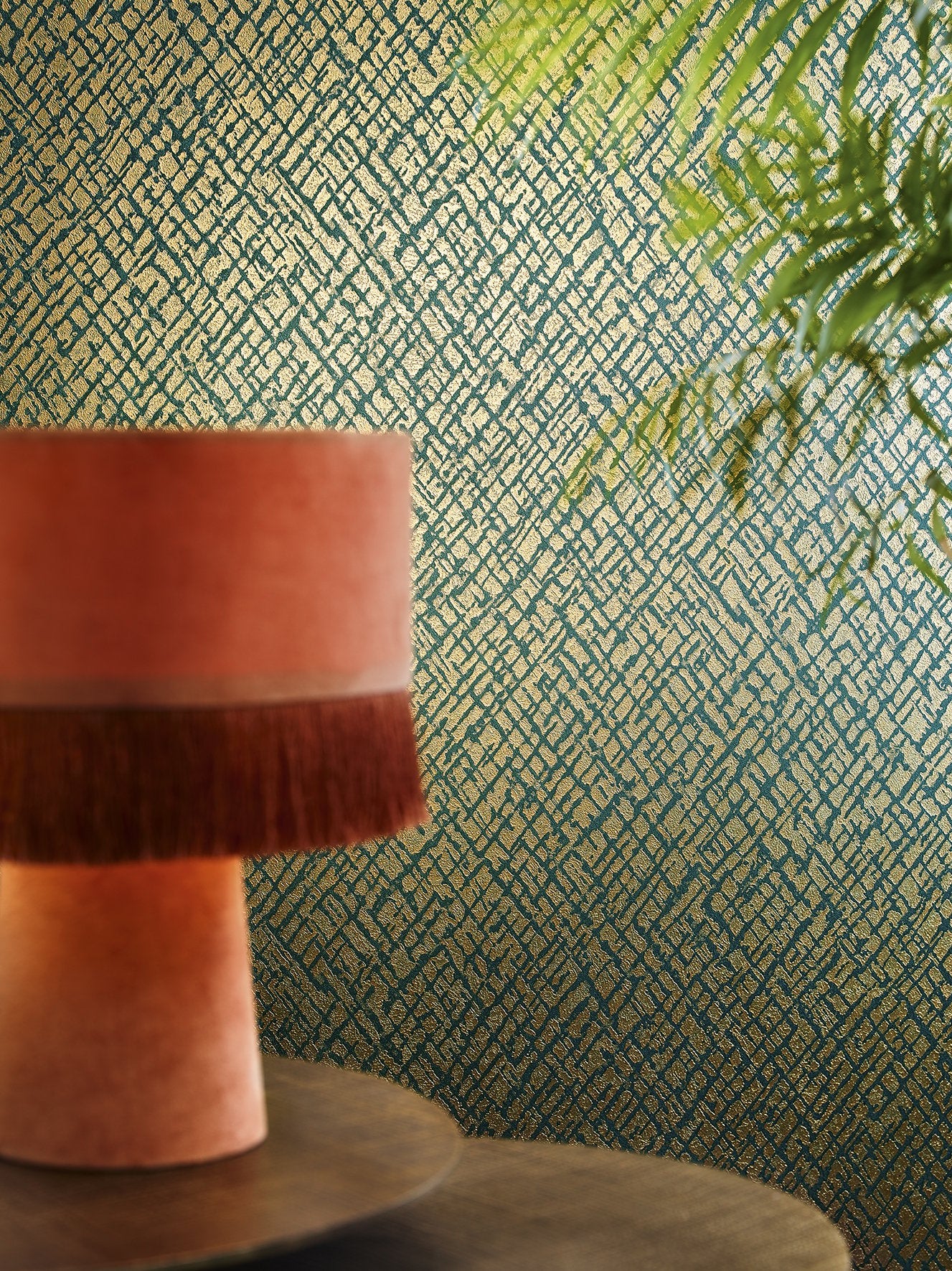 An interesting play on a diamond geometric, with industrial elements creating a cross hatch effect accentuated with an embossed sheen. A relaxing take on a classic pattern that will be on trend for years to come.