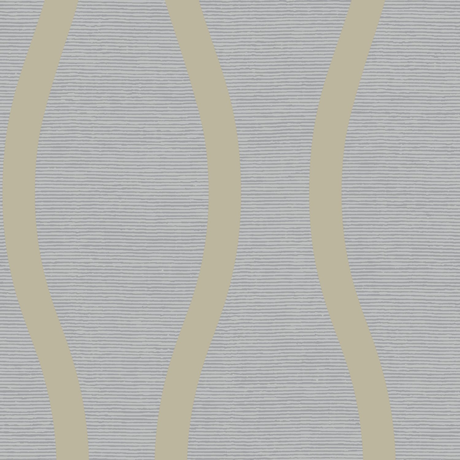 Spark up your walls with this stunning beaded wallpaper with a wavy stripe design on a shimmering metallic ground with a fine horizontal stripe. In a light blue and gold coloration.
