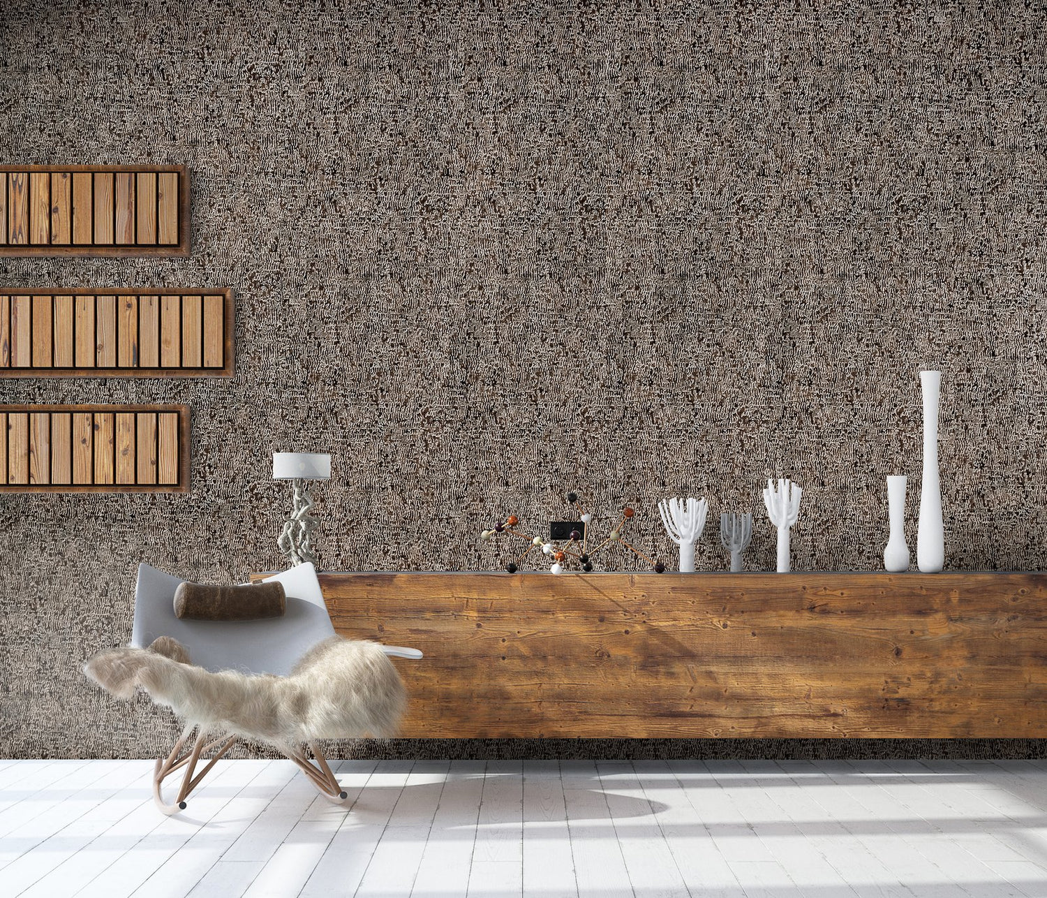 A great performance! You notice it immediately when you touch the non-woven wallpaper ALPINE REPTILE. The raised structure thanks to real glass beads not only looks good, it also feels good. The leathery and delicate structures of reptiles have inspired us. The design of ALPINE REPTILE is one of nine others in the collection that emphasize the feeling for haptic experiences and high-quality products. can be felt! The experience continues in the game with the incident light. Gloss and glimmer effects emphasizes the leathery look of the healthy living non-woven wallpaper from Hohenberger. The effects are achieved by special white glass beads, which we bring to the surface sustainably and safely using a complex process.