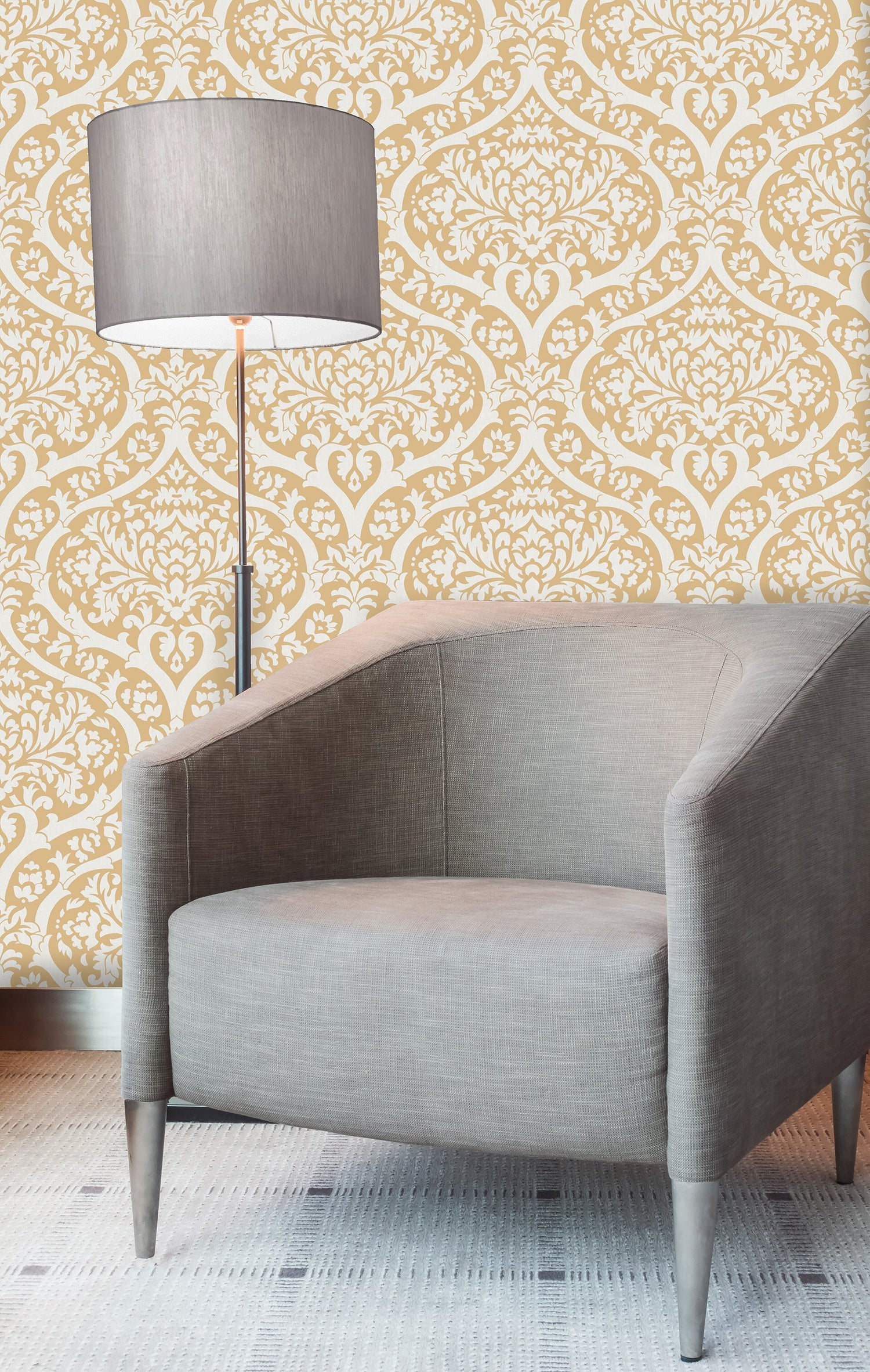 Fine Decor 2900-42527 Sandringham Mustard Damask Wallpaper - Bolt is backordered and will ship as soon as it is back in stock.