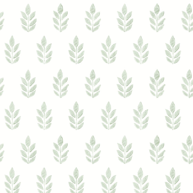 Chesapeake 3122-11304 Ervic Green Leaf Block Print Wallpaper - Bolt is backordered and will ship as soon as it is back in stock.