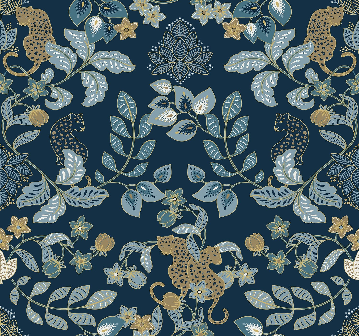 A-Street Prints 4034-72133 Getty Navy Jungle Damask Wallpaper by Scott Living