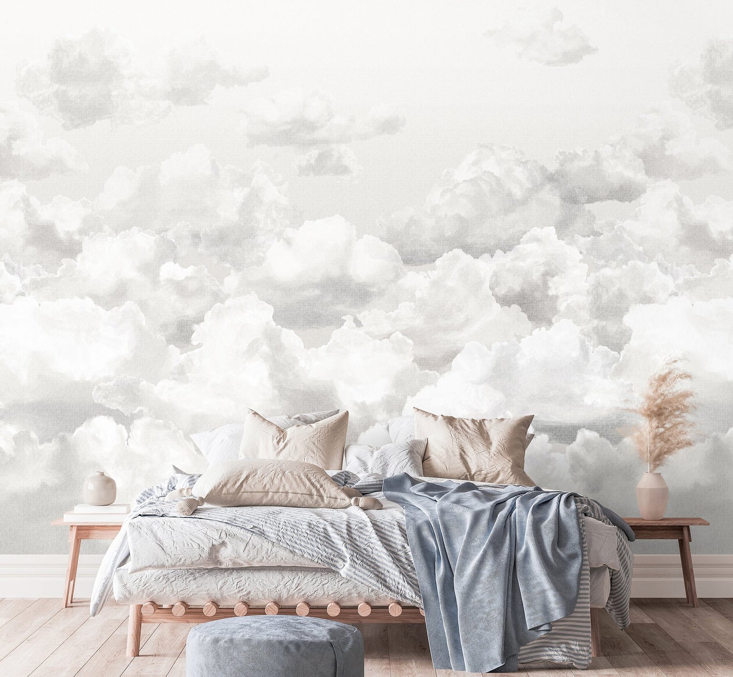 "Above the clouds, freedom must be limitless", sang the German songwriter Reinhard Mey. And since freedom is limitless, he also interpreted his song in a French version. Take off gently with a sky in a healthy room with the CLOUDS wall mural from Hohenberger Wallcoverings! It impresses with its depth effect and a particularly elegant matte effect. The textile structure of the photo wallpaper makes the subtle look even softer and more padded. CLOUDS photo wallpaper mural for that cloud nine feeling