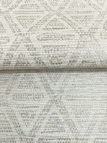 A diamond grid gains complexity and depth with the textural detailing of faux grasscloth. Featured here in metallic silver against pale grey. Kelce is an unpasted, non woven wallpaper measuring 54 inches wide by 90 feet long, covering approximately 405 square feet per roll.