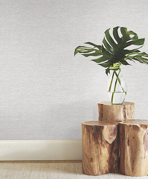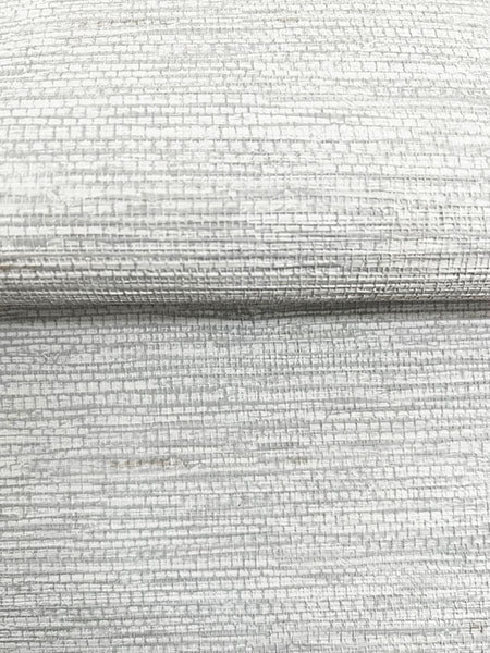 Thin bands are inked and embellished with texture to simulate a woven expanse of grasscloth. Featured here in ivory and pale blue-grey. Mae is an unpasted, non woven wallpaper measuring 54 inches wide by 90 feet long, covering approximately 405 square feet per roll.