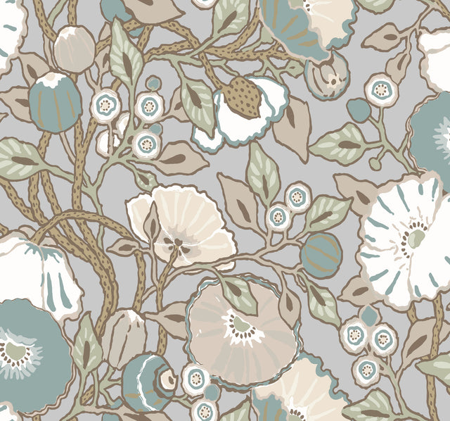 York GO8313 Vincent Poppies Heather Wallpaper - Bolt is backordered and will ship as soon as it is back in stock.