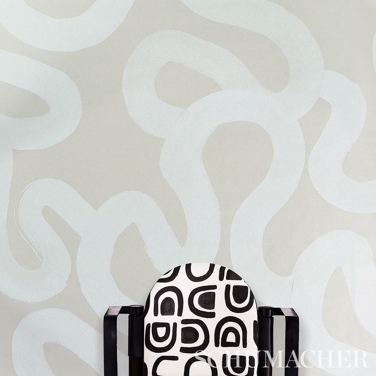 Hadiya Williams Trace wallpaper in sesame features a winding, gestural design based on an original acrylic painting. Its extra-large scale and striking sense of movement create a painterly mural-like effect that can add an artsy edge to an accent wall, ceiling or entire room.