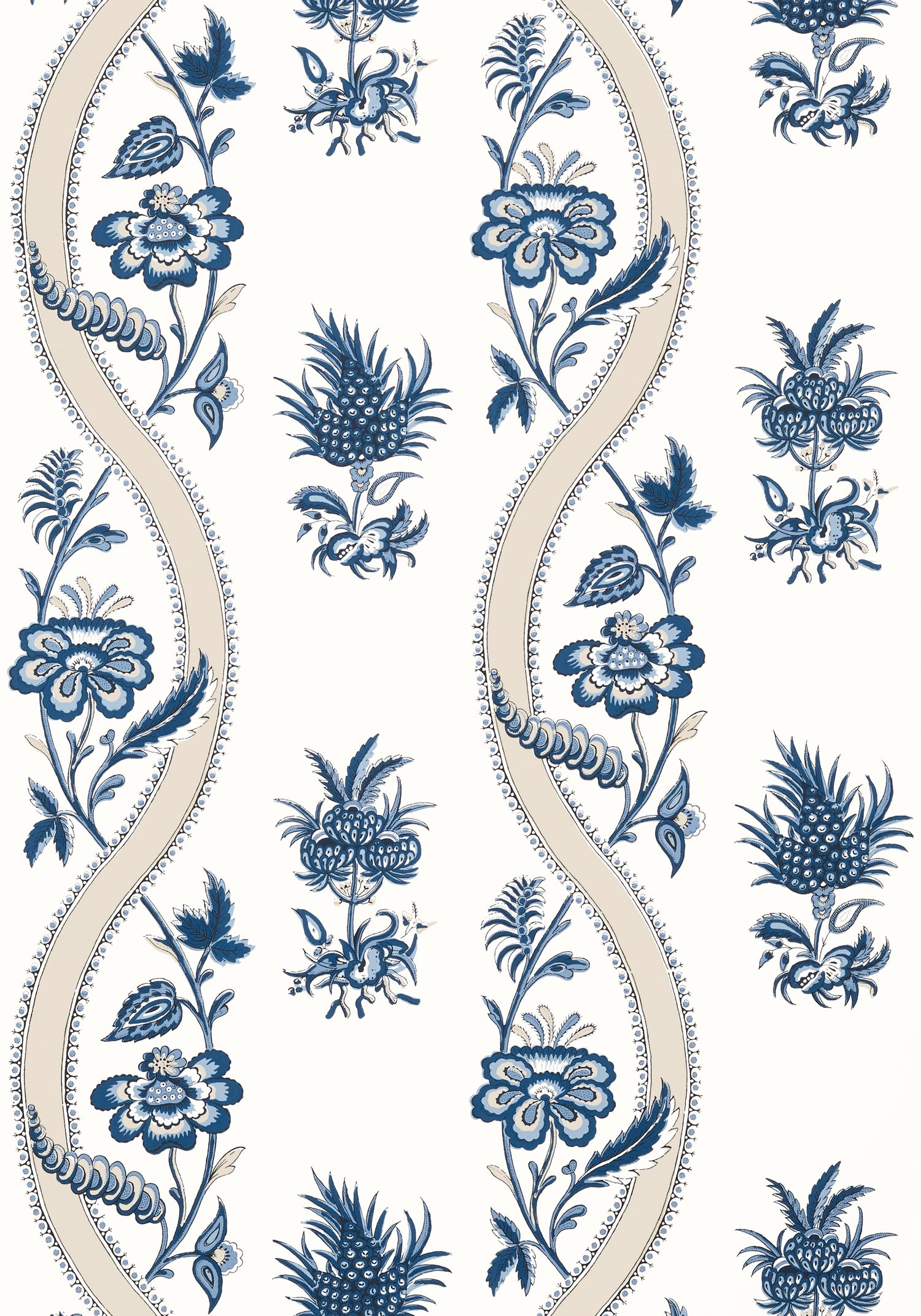 Thibaut T36423 RIBBON FLORAL Blue and White Wallpaper - Bolt is backordered and will ship as soon as it is back in stock.