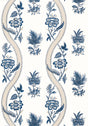 Thibaut T36423 RIBBON FLORAL Blue and White Wallpaper