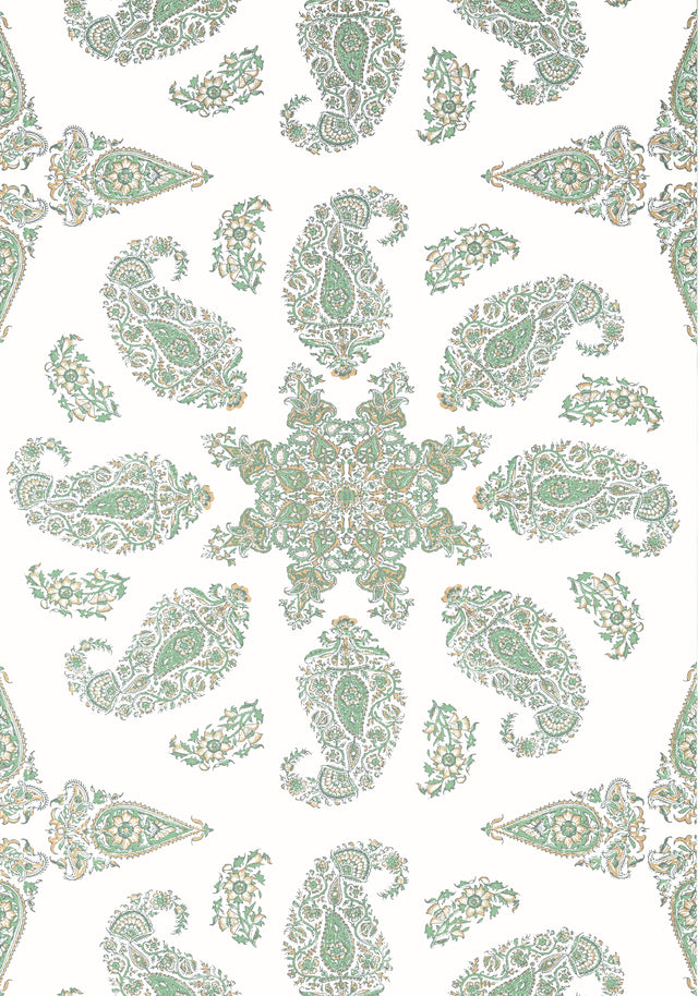 Thibaut T36442 EAST INDIA Green and White Wallpaper - Bolt is backordered and will ship as soon as it is back in stock.