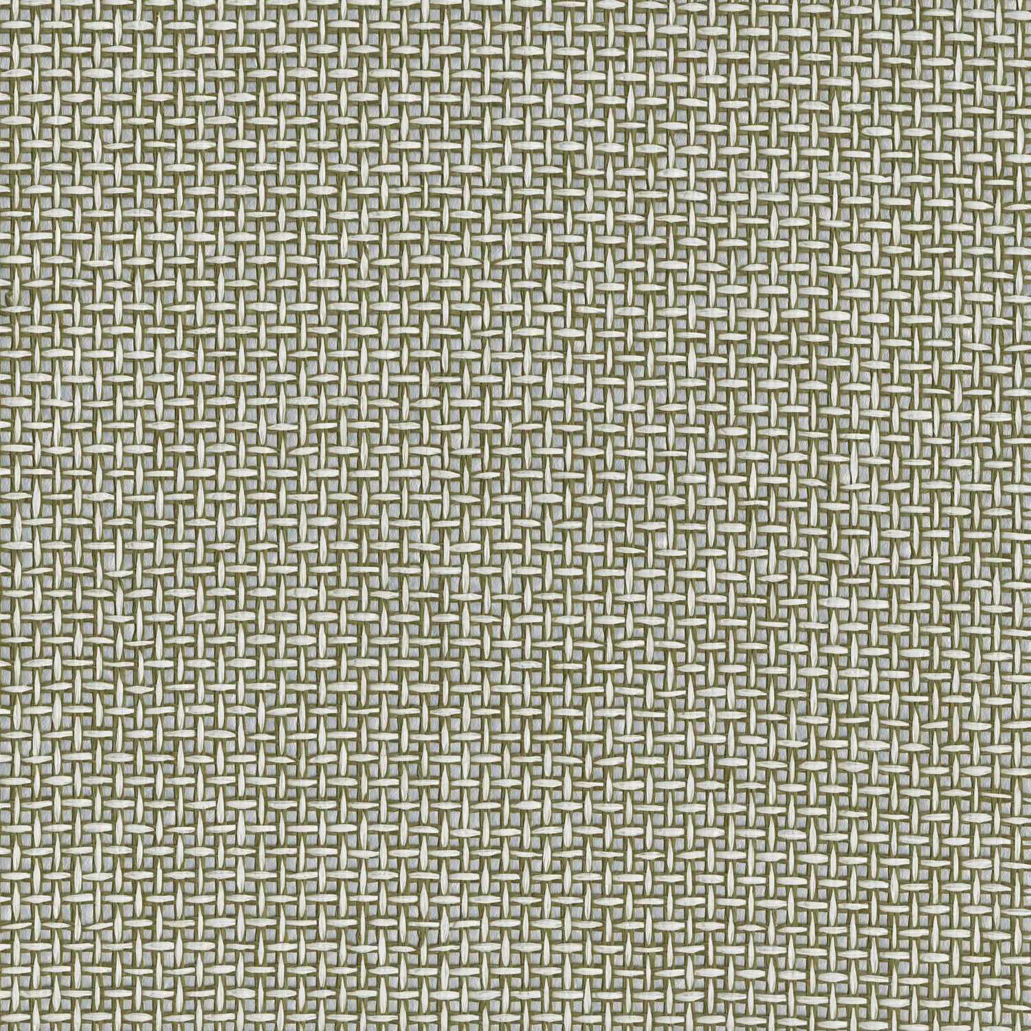 Paperweave with metal back wallpaper. In hues of cream and khaki green on a silver foil ground.