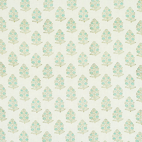 Schumacher Aditi Hand Blocked Print Green Fabric