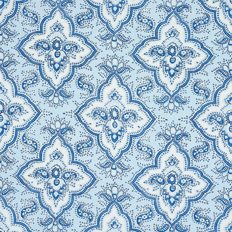 Schumacher Amalia Medallion Handmade Print Blue Fabric