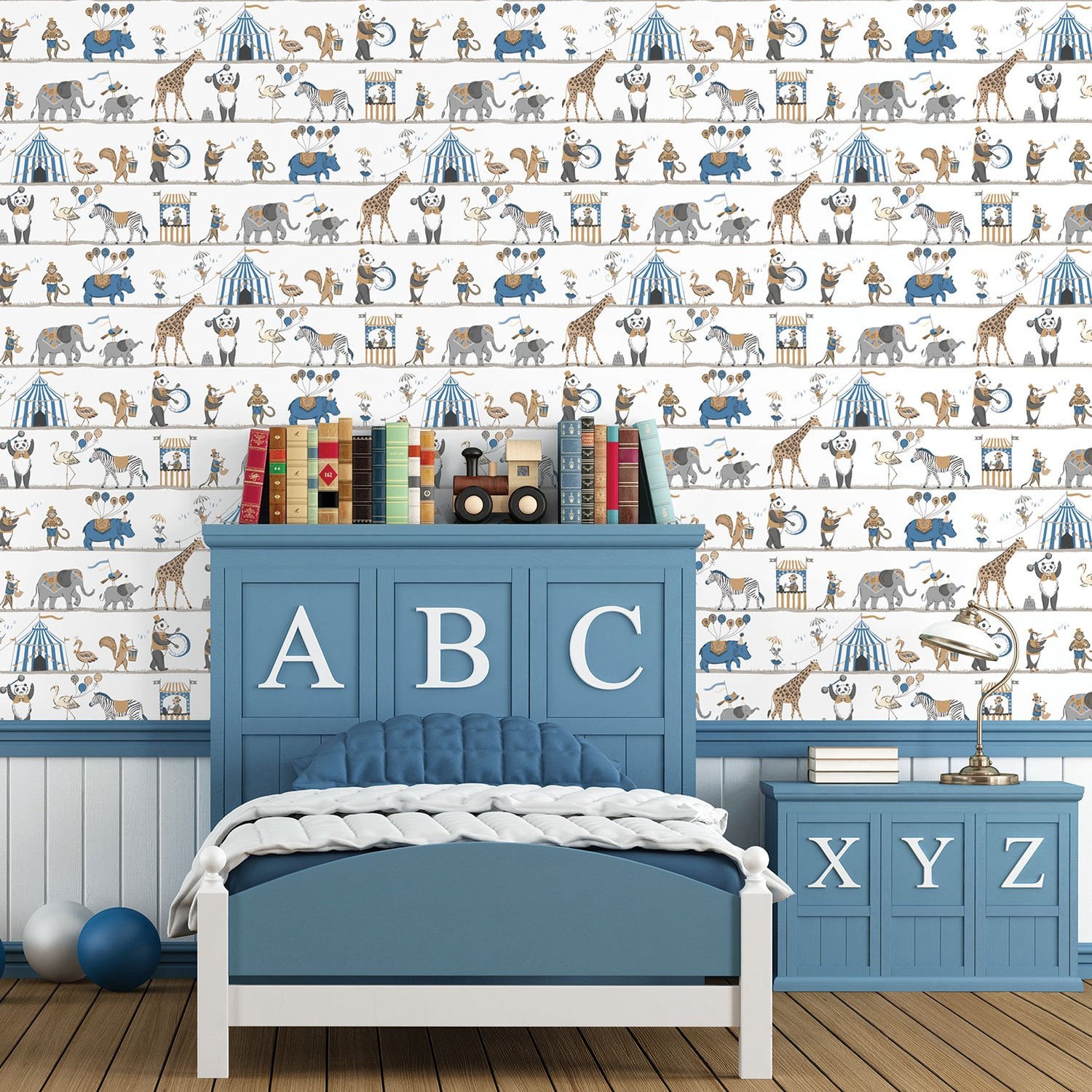 Galerie G56546 Circus Parade Blue Wallpaper - Bolt is backordered and will ship as soon as it is back in stock.