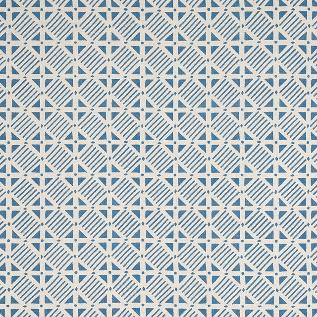 Thibaut F916224 PLAZA Blue on Natural Fabric - Yard is backordered and will ship as soon as it is back in stock.