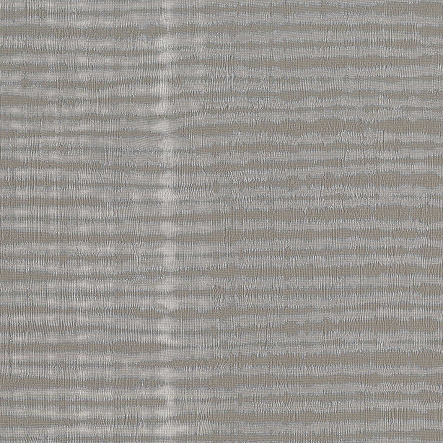 A horizontal stripe shibori design on a textured vinyl wallpaper. In hues of gray, taupe and shimmering metallic silver.