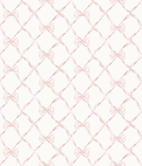 A-Street Prints AST4114 Baby Bow Faded Primrose Ribbon Trellis Wallpaper