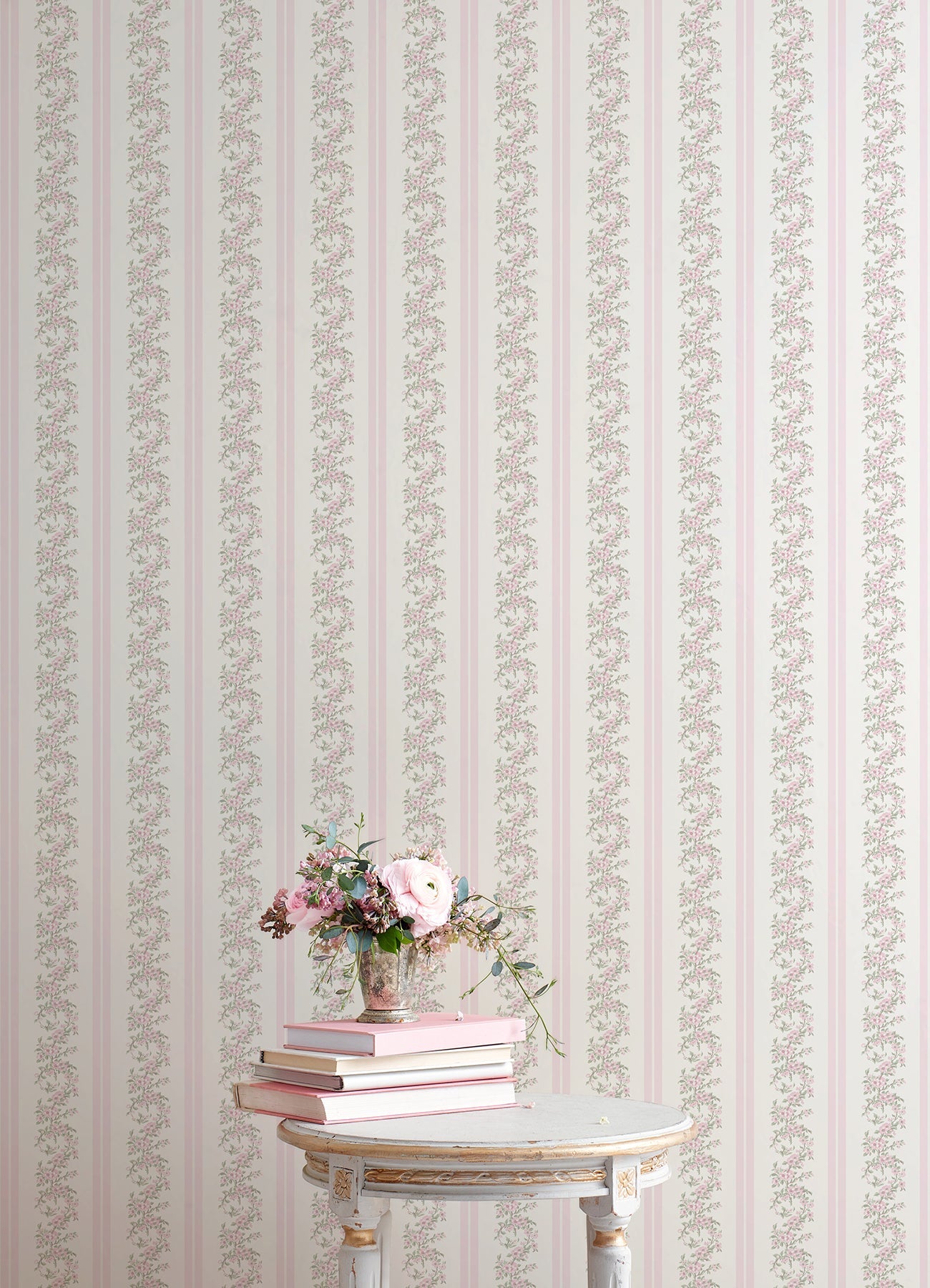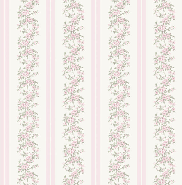A-Street Prints AST4649 Marigold Wreath Pastel Peach Floral Stripe Wallpaper