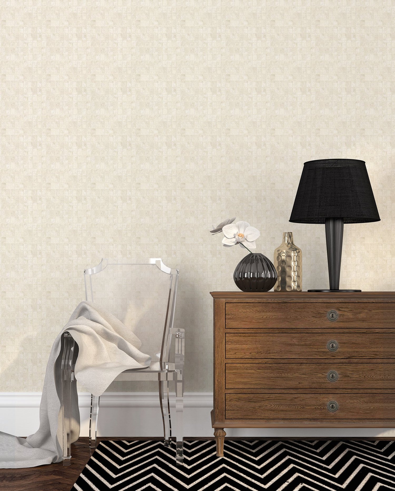 Galerie W78212 Metallic Tile Cream Wallpaper