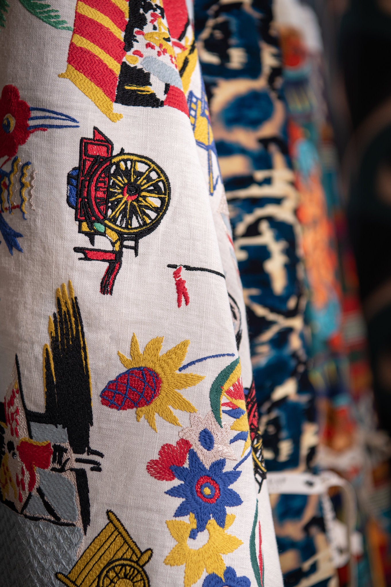 Transport yourself to the lively streets of Sicily with CARRETTO DEL CIBO, an embroidered fabric that captures the essence of a bustling market scene. Vibrant carts laden with goods weave through the colorful streets, while whimsical banners dance in the breeze, infusing the scene with charm and vitality. Set against a backdrop of plain light beige, the vibrant hues of CARRETTO DEL CIBO pop with life, creating a captivating contrast that is sure to enliven any space. Perfect for adorning cushions, curtains, blinds, and soft furnishings, this fabric brings the spirited energy of Italian street life into your home.